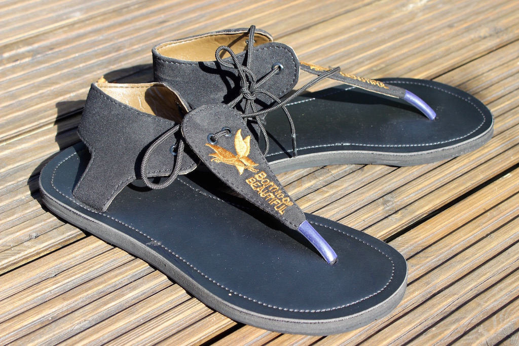 Lace-up, black sandals with a black strap, embroidered with the B2BB logo in gold – available in sizes 39, 40 and 41.